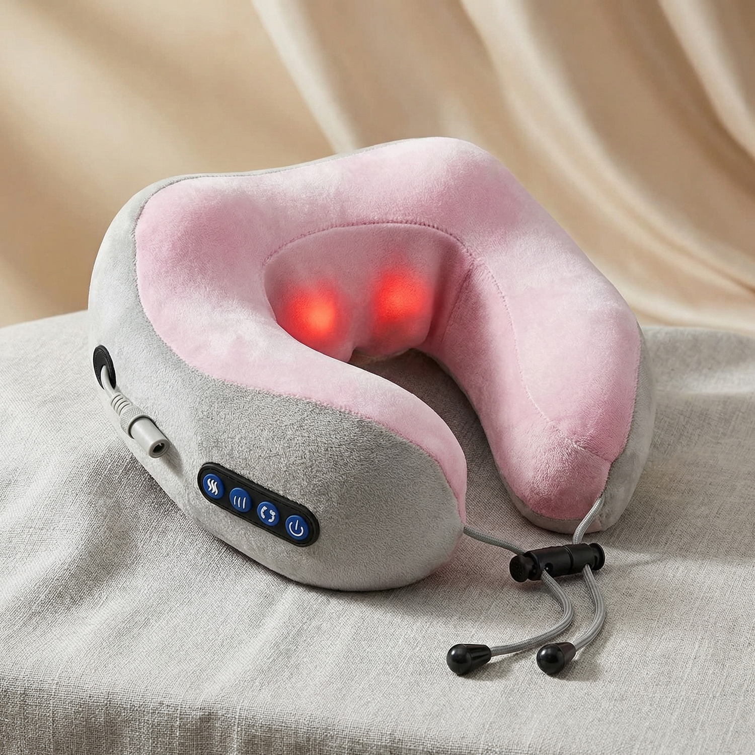 The neck massager is made from high-quality memory foam and ABS material, providing both support and comfort.